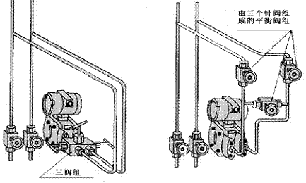 ⑴將平衡流量計正壓則引壓管導入三閥組接至差壓變送器的正壓室,將平衡流量計負壓側(cè)引壓管導入三閥組接至差壓變送器的負壓室