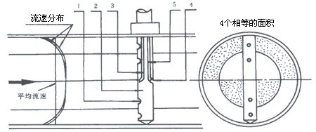 均速管流量計,它是一根沿直徑插入管道中的中空金屬桿,在迎向流體流動方向有成對的測壓孔,一般有兩對,其外形似笛。迎流面的多點(diǎn)測壓孔測量的是總壓,與全壓管相連通,引出平均全壓p1,背流面的中心處開有一只取壓孔,與靜壓管相通,引出靜壓p2。均速管是利用測量流體的全壓與靜壓之差來測量流速。