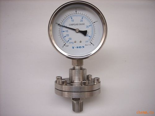 為使通用型壓力表能適用于測量強腐蝕、高溫、高粘度、易結晶、易凝固、有固體浮游物的介質壓力以及必須避免測量介質直接進入通用型壓力儀表和防止沉淀物積聚且易清洗的場合,應必須采用由隔膜隔離器與通用型壓力儀表組成一個系統的隔膜表。