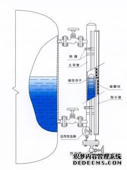 液位計(jì)根據(jù)浮力原理和磁性耦合作用研制而成。當(dāng)被測(cè)容器中的液位升降時(shí),液位計(jì)主導(dǎo)管中的浮子也隨之升降,浮子內(nèi)的永久磁鋼通過(guò)磁耦合傳遞到現(xiàn)場(chǎng)指示器,驅(qū)動(dòng)紅、白翻柱翻轉(zhuǎn)180。,當(dāng)液位上升時(shí),翻柱由白色轉(zhuǎn)為紅色,當(dāng)液位下降時(shí),翻柱由紅色轉(zhuǎn)為白色,指示器的紅、白界位處為容器內(nèi)介質(zhì)液位的實(shí)際高度,從而實(shí)現(xiàn)液位的指示。